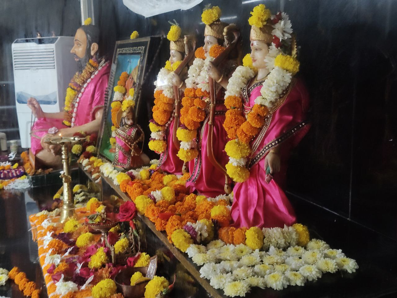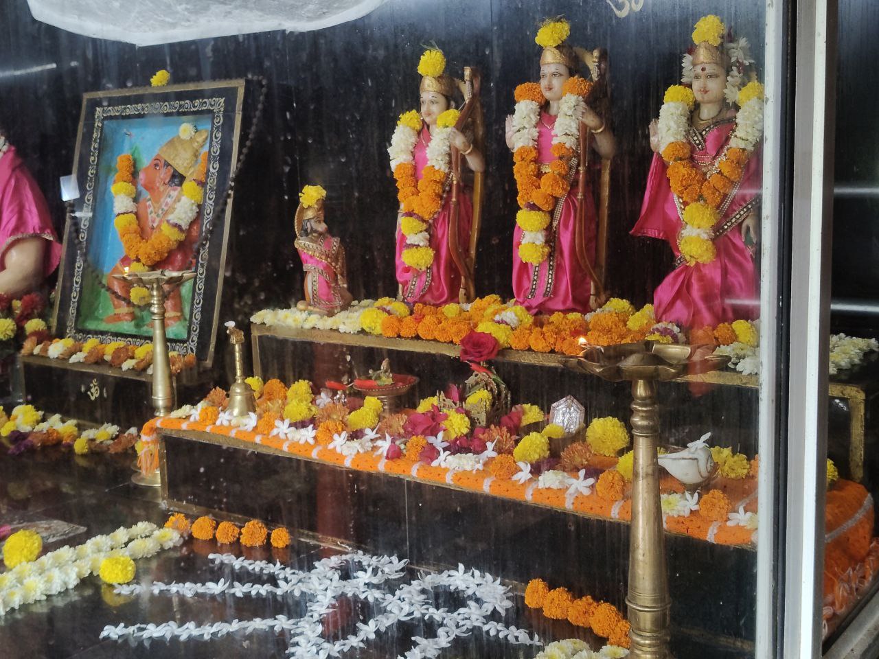 "Abhishek Pooja" in English translates to a ceremonial offering or sprinkling, often involving the bathing of idols or deities in a Hindu ritual. It's a sacred act of purification and consecration, typically done during worship.