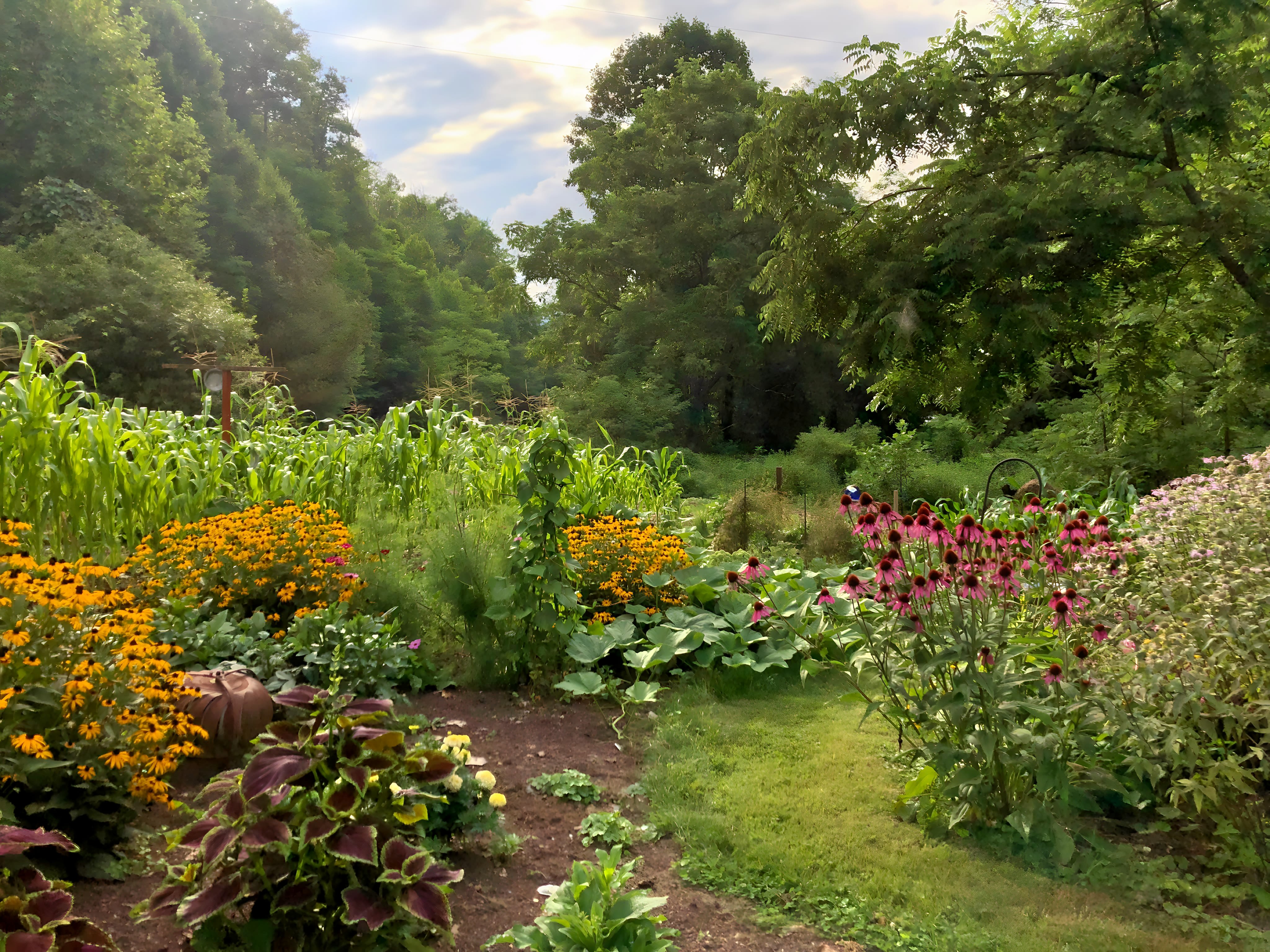 A flower garden, also known as a floral garden, is a designated area in a garden where flowering plants are grown and displayed. It typically focuses on herbaceous plants, though flowering woody plants can also be included. The primary purpose of a flower garden is to provide a display of colors and textures from various flowering plants.